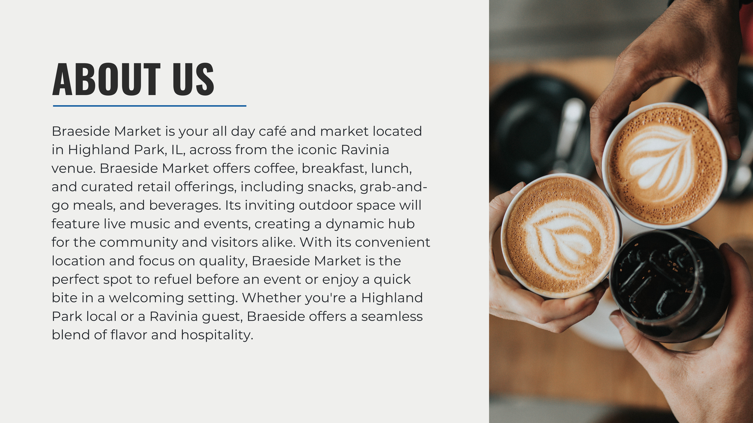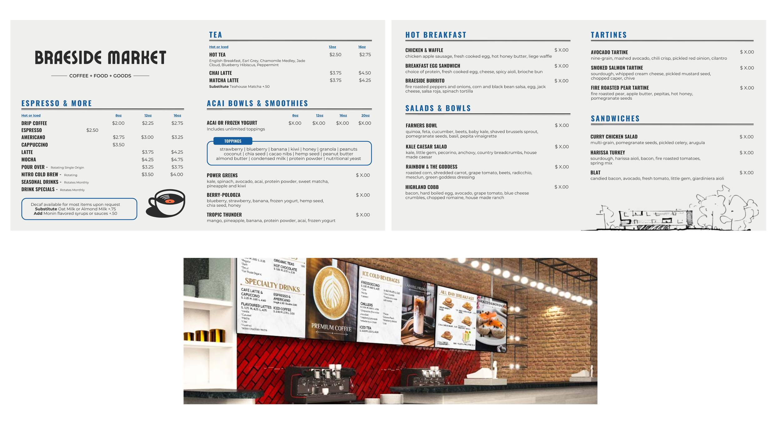 As the grand opening approaches, I’ll be finalizing the brand guidelines, designing menus, creating A-frame marketing materials, branded cups, social media and overseeing the design of exterior signage to ensure a strong and cohesive brand presence.