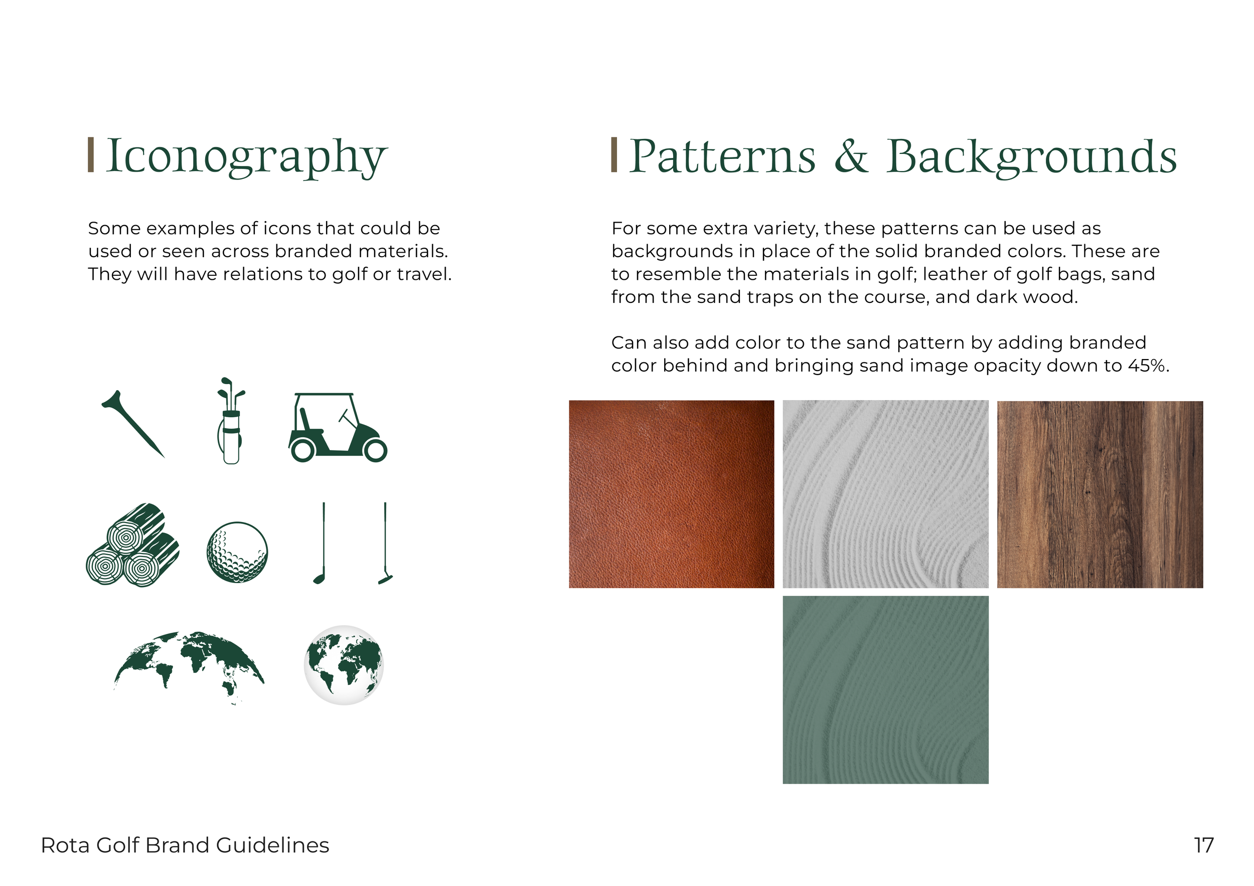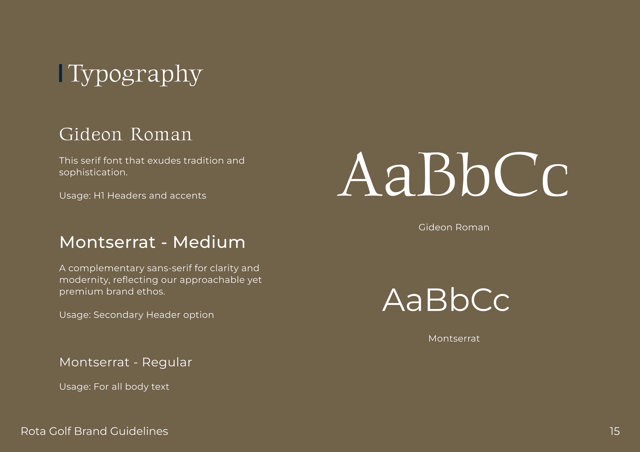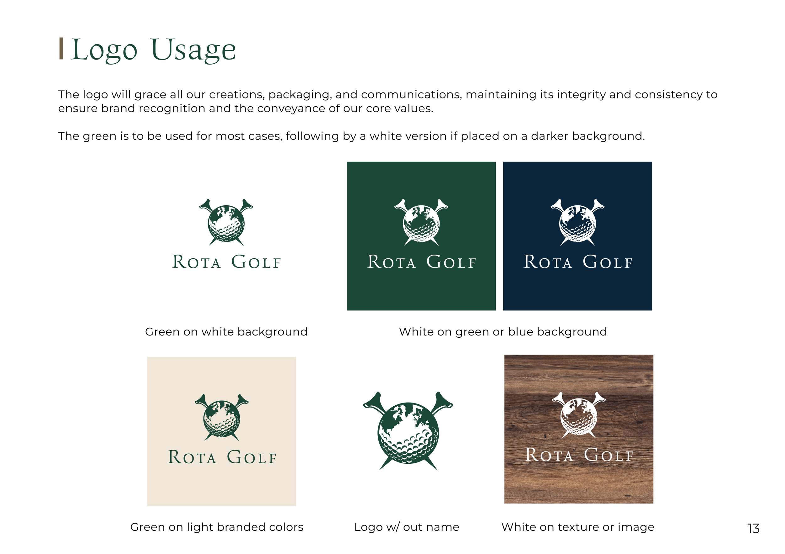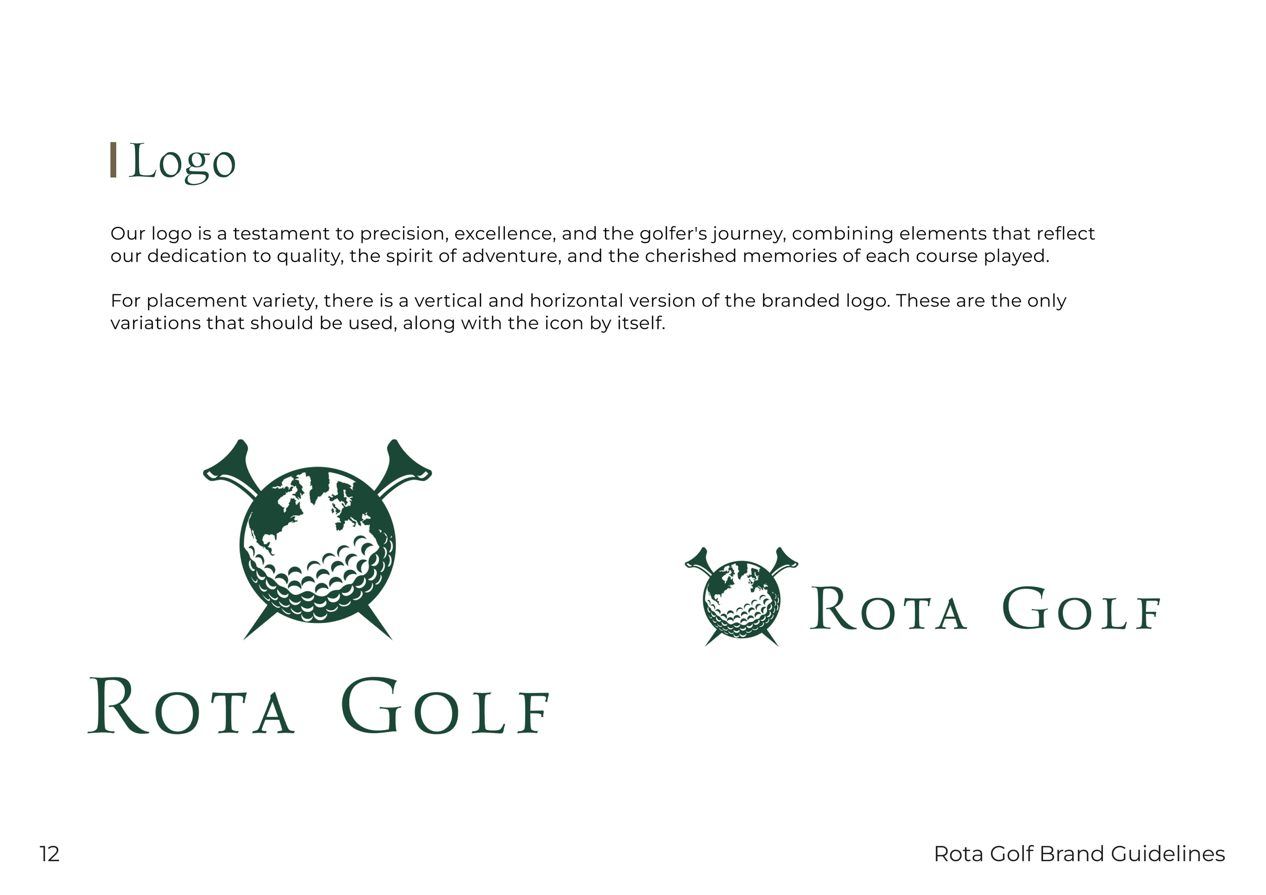 This freelance project began with collaborating with the client on name ideation, ultimately landing on 'Rota Golf.' With the name finalized, I developed concepts for color palettes, fonts, and logos, all inspired by the client’s initial input and preferences.